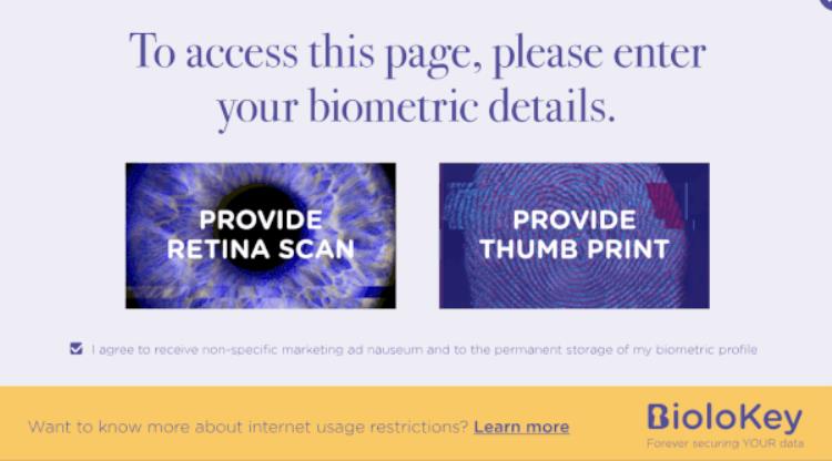 网站提示我需要完成生物信息认证,并「人性化」地提供了视网膜和指纹两种方式认证。