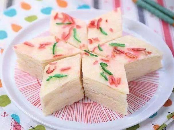 千层油糕是扬州的传统名点之一,以其层次分明、香甜可口而著称。这道点心选用优质的面粉和糖等原材料,经过精细的制作工艺,制作成层次分明的油糕。油糕的颜色呈现出淡黄色,表面油润光滑,散发着淡淡的甜香。每一口都能感受到层次之间的香甜滋味,让人欲罢不能。