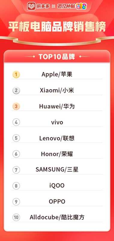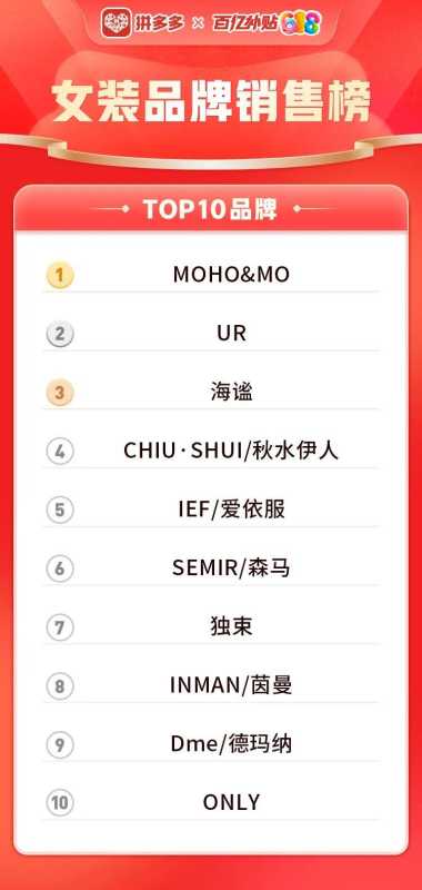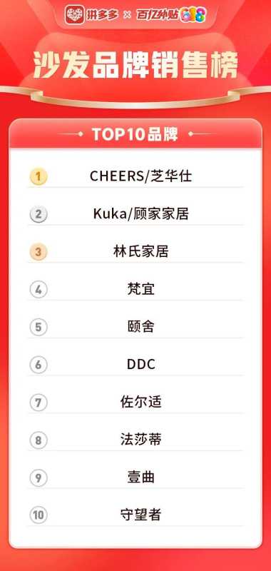 以下为拼多多百亿补贴618大促首批品牌销售排行榜: