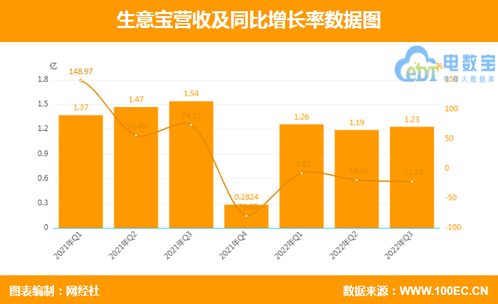 2022年前三季度,生意宝实现营收3.66亿元,同比下降16.62%;归属于上市公司股东的净利润1722.31万元,同比增长4.17%。(详见:http://www.100ec.cn/detail--6619790.html)