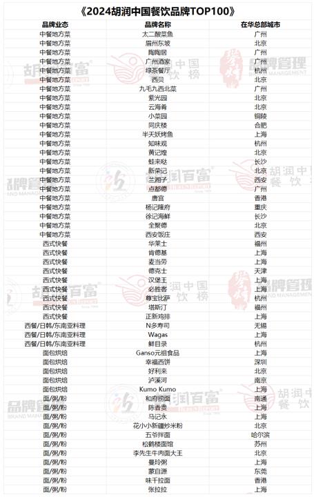 中国餐饮品牌TOP100揭晓:上海23家上榜排第一,北京15家、重庆7家紧随其后