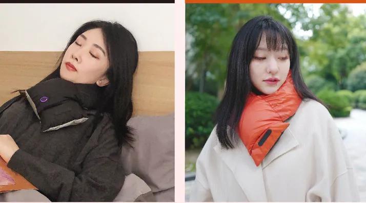 围巾贴后很防风,仿佛一团暖云包裹住你的脖子,里面90%白鹅绒填充,中间加了专利碳纳米加热膜,1秒速热。脏了也不怕,可折叠可水洗,围巾颜值也很高,带出去暖和又拉风。