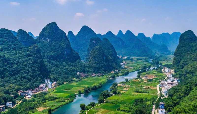阳朔是桂林山水最佳的展示地之一。有美丽的山水风景和独特的民俗文化,可以乘坐竹筏游览漓江,感受自然美景。阳朔大概率是可以和唯美山水画划等号,有了这样的想法,那云雨阴晴,日升日落,就能遇到都有醉人的风景!建议坐上缓慢的竹筏,看两岸连绵起伏的山峰和田园风光。沿途还会经过小镇和很多古桥,底下则是清澈的河面,安静又放松。
