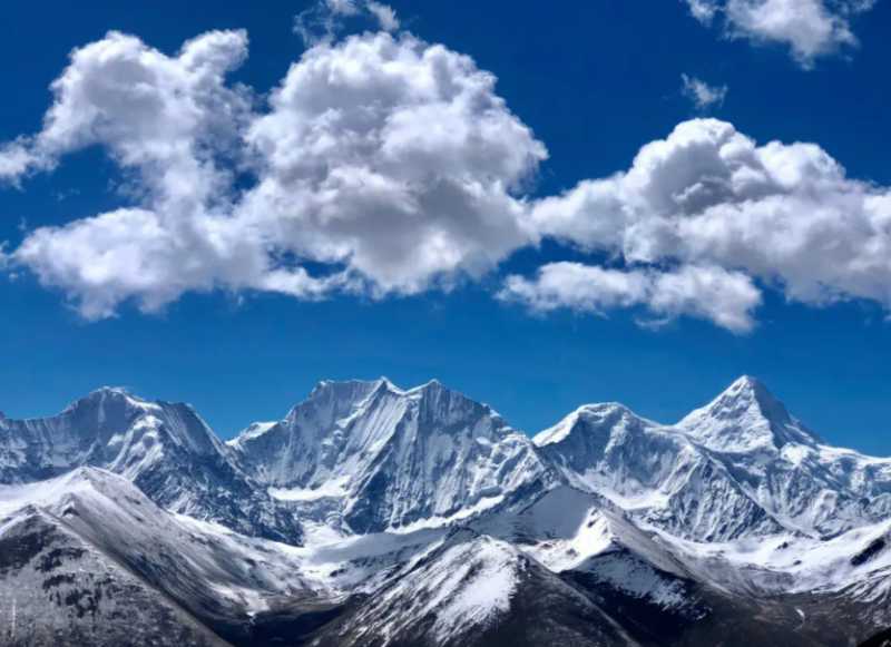 贡嘎雪山主峰7556米,是四川省内最高峰,被称为“蜀山之王”。藏语的“贡”是冰雪之意,“嘎”为白色,意为白色冰山。每当阳光高照,贡嘎雪山在阳光的照耀下泛着金色光芒,震撼而壮美,能让人将所有烦恼抛弃,被这绝美的景色治愈。