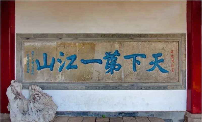 相传,甘露寺相亲时,刘备与孙权宴后观赏江景,刘备见北固山雄峙江岸,气势雄伟,赞道:“真乃第一江山也”。南北朝时,梁武帝见到北固山壮观的景色,写下了“天下第一江山”六字。南宋时期,镇江刺史吴据将这六字重新书写出来。清康熙年间,镇江通判程康庄临摹勒石,此后北固山就名正言顺地有了“天下第一江山”之称。