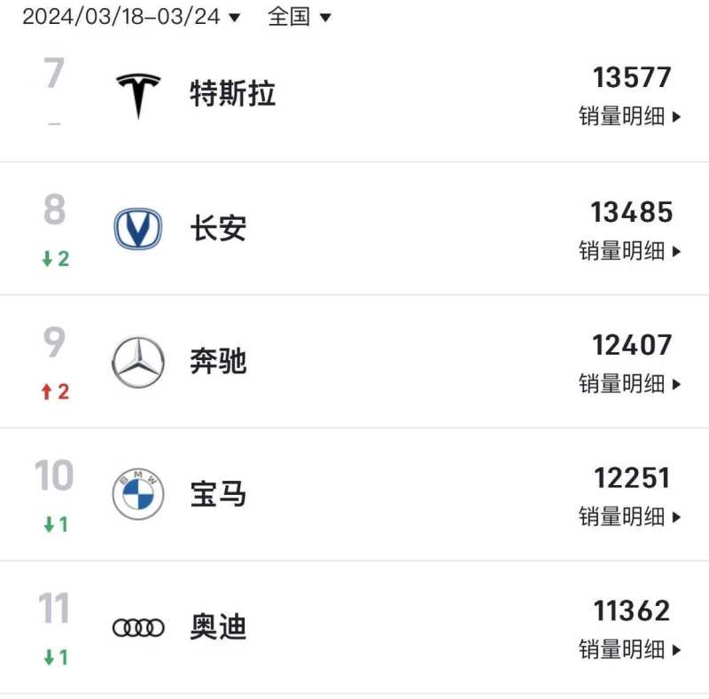 首先,特斯拉(周销:13577台)走势挺强,稳居第一但周销为今年新高。大概率与特斯拉官方此前公布的4月起Model Y将涨价有关,Model Y上周卖了超万台。据悉,4月起Model Y将涨价5千元,调价后实际涨幅最高2.3万元。