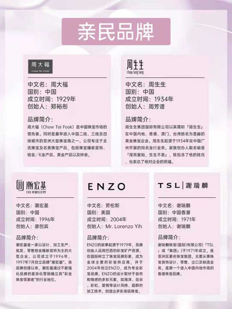 亲民品牌:潮宏基、谢瑞麟、周大福、周生生、劳伦斯。
