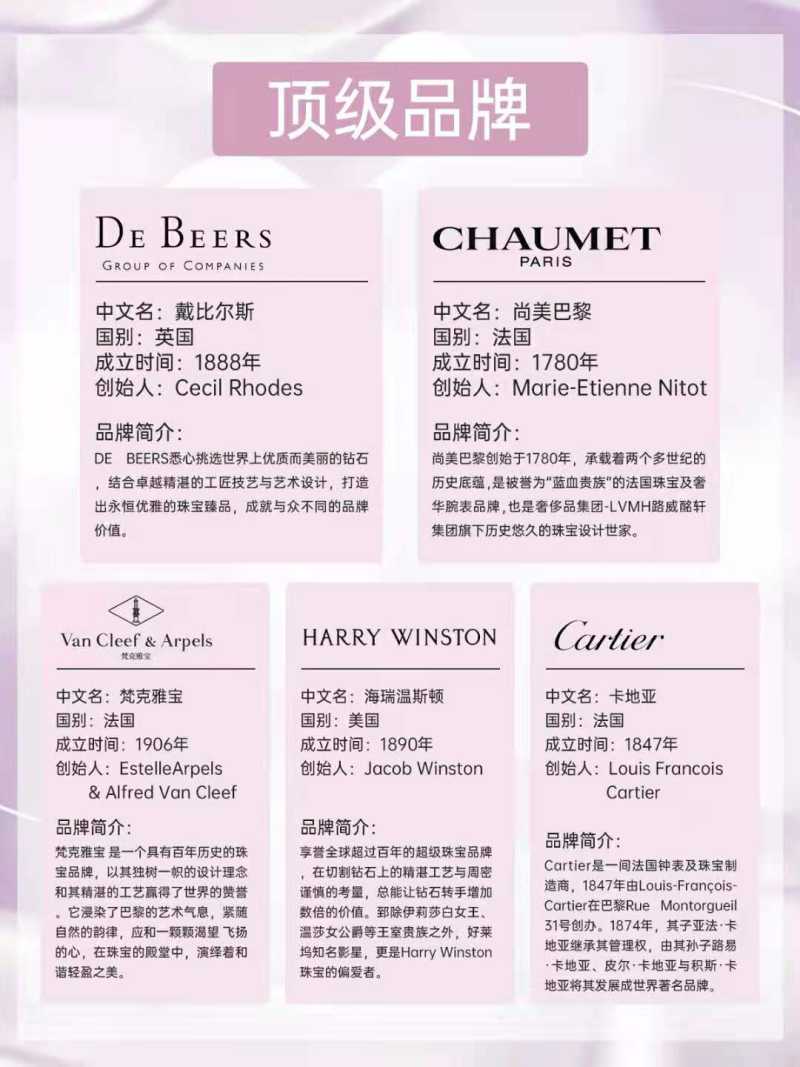 顶级品牌:尚美巴黎 Chaumet、梵克雅宝VCA、海瑞温斯顿HW、卡地亚 Catier