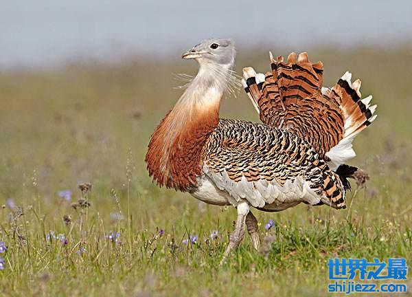 大鸨是一种比较大型的鸟类,雄鸟和雌鸟的体型相差十分大,雄鸟大约为75-105厘米之间,体型比较健壮,腿很粗很强大,走路很快。栖息于广阔草原、半荒漠地带及农田草地,通常成群一起活动。广布于欧亚大陆,从欧洲的伊比利亚半岛向东到亚洲的土耳其、蒙古、俄罗斯、中国和朝鲜半岛。是匈牙利的国鸟。