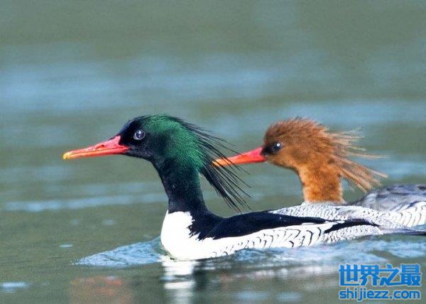 中华秋沙鸭是一种比较古老的鸟类,距今已经有1000多万年的历史了,这是我国特有的一种鸟类。秋沙鸭出没于林区内的湍急河流,有时在开阔湖泊。成对或以家庭为群。潜水捕食鱼类。分布于西伯利亚以及中国大陆的黑龙江、吉林、河北、长江以南等地,主要栖息于阔叶林或针阔混交林的溪流、河谷、草甸、水塘以及草地。因为其分布氛围狭小的缘故,目前世界上数量不超过1000只了。