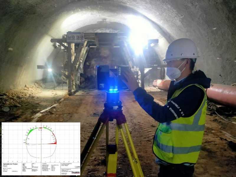 为此,终南山公路隧道施工团队出动了必用的GPS定位系统和激光导向仪。激光导向仪被架在坑道工作面100米远的地方,随着隧道的不断前进随时精准测量、调整方向与坡度,它的最远“射程”可达到500米。