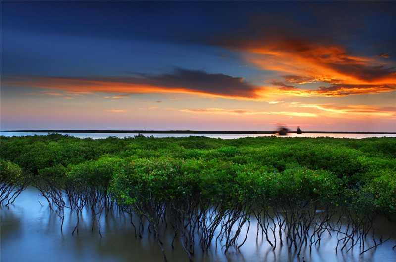 红树林是热带、亚热带海岸潮间带特有的胎生木本植物群落,素有"海上森林"之称,幽秘神奇、倚海而生,随潮涨而隐、潮退而现,是国家级重点保护的珍稀植物。北海山口镇的国家级红树林自然保护区位于广西北海市合浦县境内,海岸线长50公里,面积8000公顷,光热充足,港湾深入内陆,封闭好,海水污染程度低,理化性质稳定,滩涂淤泥肥沃,适宜于红树林生长,保护红树林面积为7.2平方公里,共有红海榄树、秋茄、桐花树等12种红树林植物,是广西乃至全国大陆海岸发育良好,连片大,结构较典型,保护较完整的红树林区。