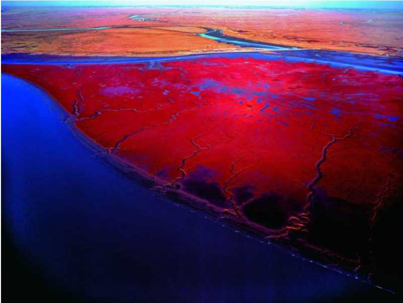 双台河口国家级自然保护区位于辽宁省盘锦市境内,地处辽东湾辽河入海口处,是由淡水携带大量营养物质的沉积并与海水互相浸淹混合而形成的适宜多种生物繁衍的河口湾湿地,总面积12.8万公顷。