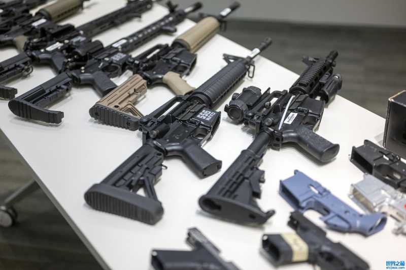 当地时间2022年10月31日,美国加州洛杉矶,在警察局总部举行的新闻发布会上,人们展示了缴获的幽灵枪,在该新闻发布会上宣布了一项奖励计划,旨在将未登记的幽灵枪从街上清除出去。