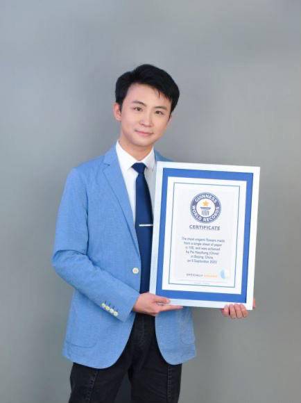 不经裁剪和粘贴,用一张纸折出百花齐放。今年12月一项新的吉尼斯世界纪录在裴浩正手中诞生,这是67年来吉尼斯收录的唯一一项超复杂折纸世界纪录,以及唯一一项用一张纸折叠出多件物体的折纸世界纪录。作为95后南京人,裴浩正的这件名为《花生满鹿》的挑战作品已经远远超出吉尼斯世界纪录所要求的范畴,而他手下独具南京特色的《紫金草》系列更是因其人道主义精神和反战理念走上世界舞台,被无数国际和平爱好者收藏。