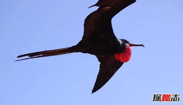 这种沿海鸟类生活在佛罗里达和加利福尼亚,雄雌性都有黑色的羽毛和灰色的喙。这些鸟以驱赶其他鸟类和吃东西而声名狼藉,它们的食物主要是小型水生动物,如鱼、鱿鱼和水母。一只长着红喉的奇怪的鸟,你可以在图片中清楚地看到。