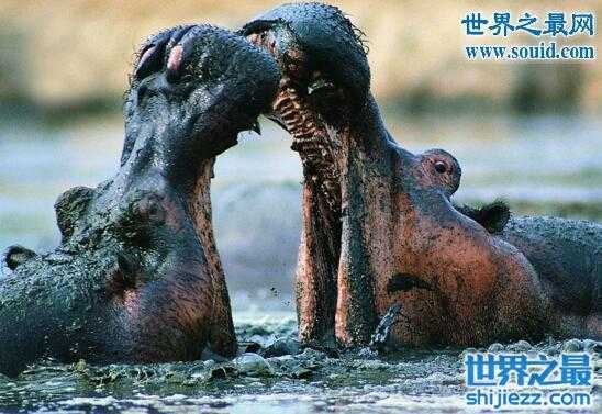 2、河马的嘴很大,咬合力很强。河马有一张特别大的嘴,比现存看陆地上任何一种动物的嘴都大,并且可以张开呈90度角。这大嘴咬断鳄鱼不在话下。鳄鱼为什么不吃河马,鳄鱼也吃不了河马。