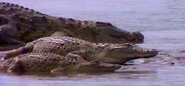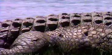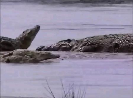 图注:一条成年尼罗鳄向“古斯塔夫”表示臣服