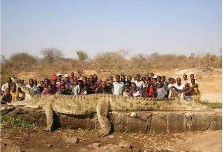 图注:津巴布韦捕捉的一头尼罗鳄(体长(估计体长4.2-4.8米)