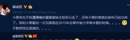 而小黑(农村主人公)已经因病去世,为了尊重逝者,照片部分没有截取。