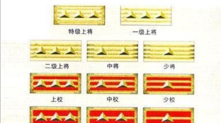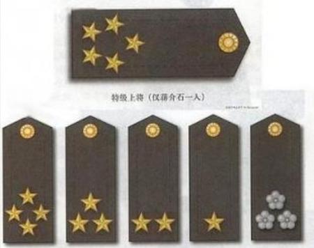 国民党的将官军衔分为5个等级:特级上将、一级上将、二级上将、中将和少将。