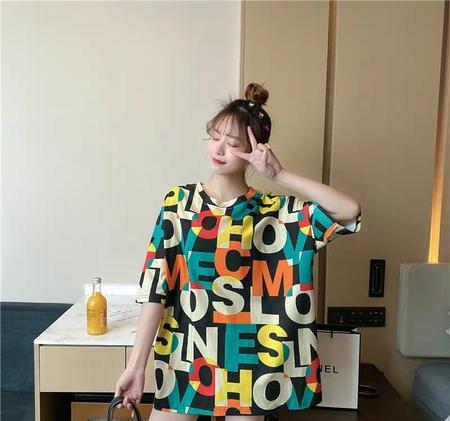 还有带花色的衣服,这个也是减胸神器,上面的字母花色,也是可以打乱人的视觉。再加上宽松,你就不用担心胸大的问题了。