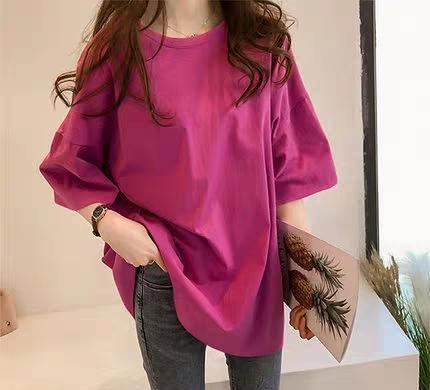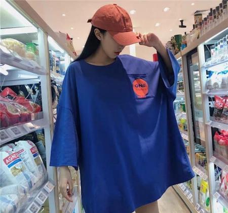 加宽加大的韩版T恤,整体休闲宽松大阪,穿在身上把什么都遮盖的好好的,不管你怎么胖,都不显肉肉的。解决胸大问题就不在话下了。