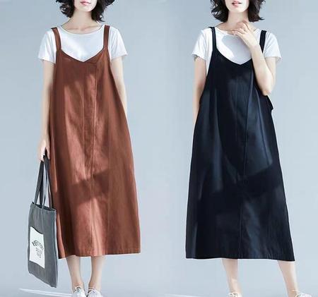 这样穿搭也可以,外面的吊打裙也能无形中把胸部比例减少一部分,是不是感觉好看多了。