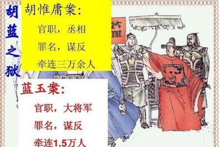 四,1393的蓝玉案,锦衣卫指挥使参奏蓝玉谋反,朱元璋把蓝玉投入大牢,三天后,朱元璋将蓝玉处死,接着一场大规模的清洗和株连。胡惟庸、蓝玉两案,株连死者且四万人。经过“胡惟庸案”、“蓝玉案”后,明朝的官员几乎被杀了大半。