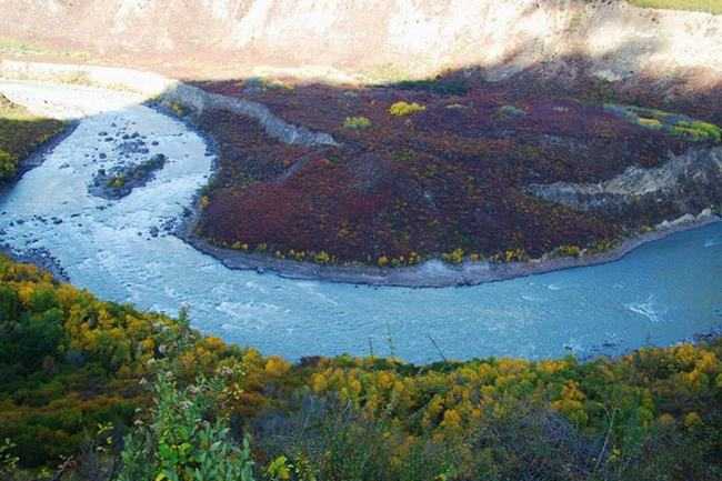 雅鲁藏布江的地理位置特殊,它的南门坐落着高大威武的喜马拉雅山,北面也有两座山,分别是冈底斯山,另外一座是念青唐古拉山脉。雅鲁藏布江就这样被三座大山南北夹击,在其中奔流不息。