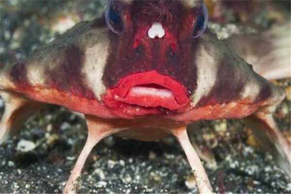 红唇蝙蝠鱼分布在热带海域的比较多,红唇蝙蝠鱼一般在浅水区域很难见到,因为这种鱼一般都生活在黑暗的深海区,但是红唇蝙蝠鱼虽说有很多条腿,但是红唇蝙蝠鱼在海底的游行速度真很慢,就像是陆地上蜗牛爬行差不多。一般红唇蝙蝠鱼的背部都会长有一些小刺,一般都是以自身的伪装或者是头部慢慢形成凸物来吸引猎物的注意力并进行捕捉,红唇蝙蝠鱼大多数都是以小鱼和一些比自己个头小的无脊椎生物来当做自己的食物。