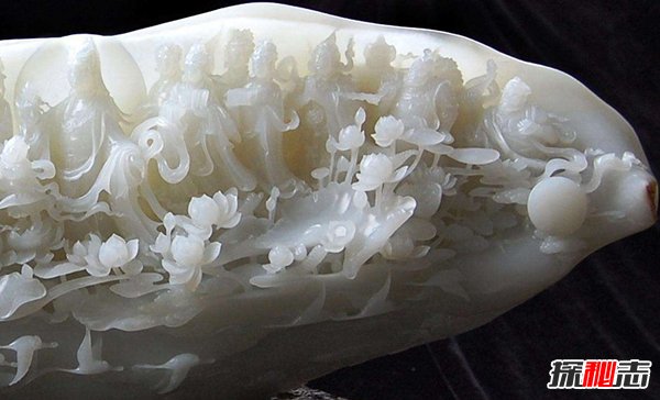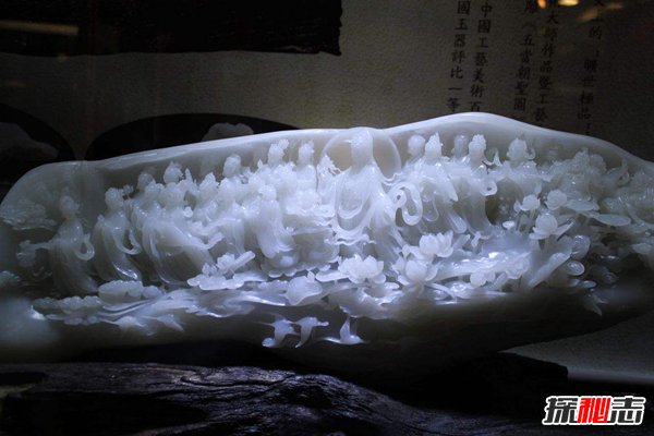 这块昂贵的玉叫做大爱如天歌,它的长度大约为60厘米,高度大约20厘米,上面有26个栩栩如生的仙人,这块美玉是由中国有名的雕刻大师袁嘉骐先生用三年的时间创作而成的,整块美玉十分白润精美,当然更让人在意的是五亿元整”的标价。