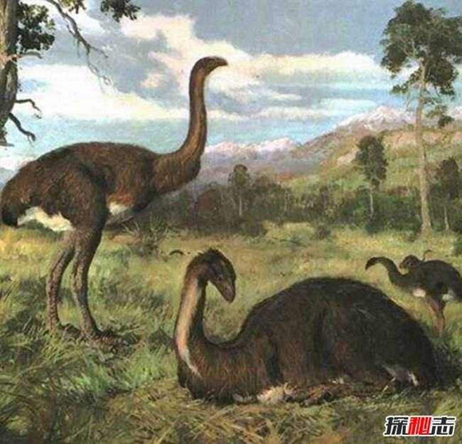 恐鸟长得有点像鸵鸟,它是一种不会飞的鸟,主要生活在公元前1500年。不过因为当时人们大量捕杀,目前已经灭绝。恐鸟最高可以长到三米多,体重也可以接近500斤,现在鸵鸟在它们面前就像小孩似得。