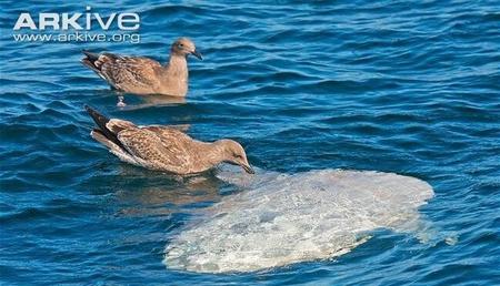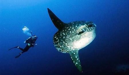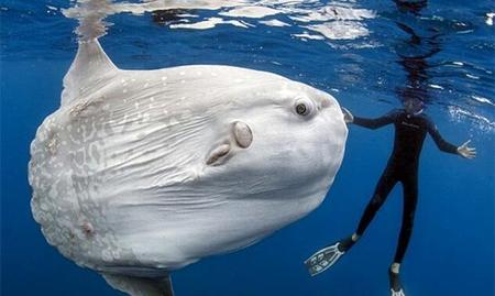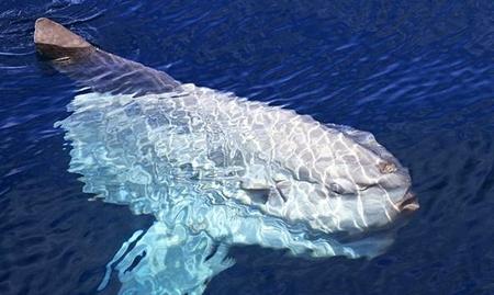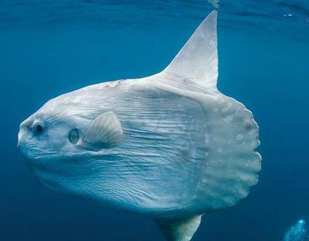 翻车鱼确切的叫法应该是“翻车鲀”,它们广泛分布于所以热带和温带海域,成年翻车鱼游速较慢,主要以水母、甲壳类、头足类生物为食,同时它们也是鳍足类(海豹、海狮)、鲨鱼、虎鲸的猎物。翻车鱼背鳍和臀鳍非常发达,喜欢漂浮在水面享受“日光浴”,因此也被称为“海中太阳鱼”(ocean sunfish),又因为身体泛出银白的光泽,于是又被称为“月光之鱼”。