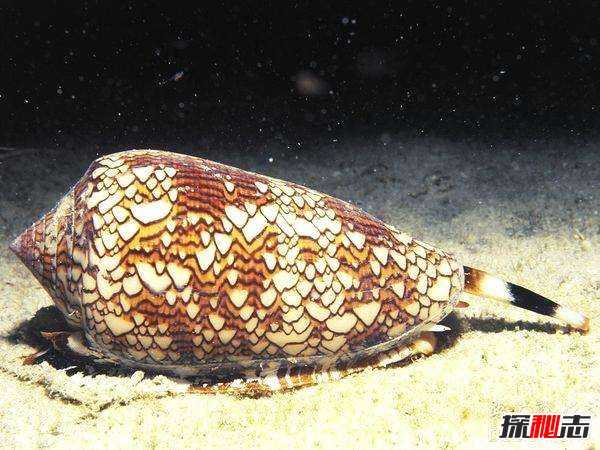 锥形蜗牛锥形蜗牛也就是芋螺,主要生活在热带海域,一般都生活在暖海地区,是一种在沿海珊瑚礁、沙滩上生活的美丽的螺类。