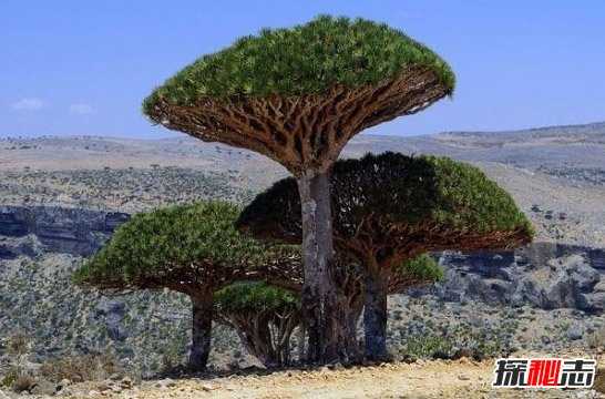 这种树长得就像外星人飞碟一样的龙血树,其树皮一被割破,就会流出殷红的汁液,被称为龙血。据说古时巨龙与大象交战时,巨龙的血洒大地,后来从土壤中生出来的便是龙血树。当龙血树受到损伤时,它会流出深红色的像血浆一样的粘液——这种在传说中被认为是龙血的粘液,龙血树便因此得名。