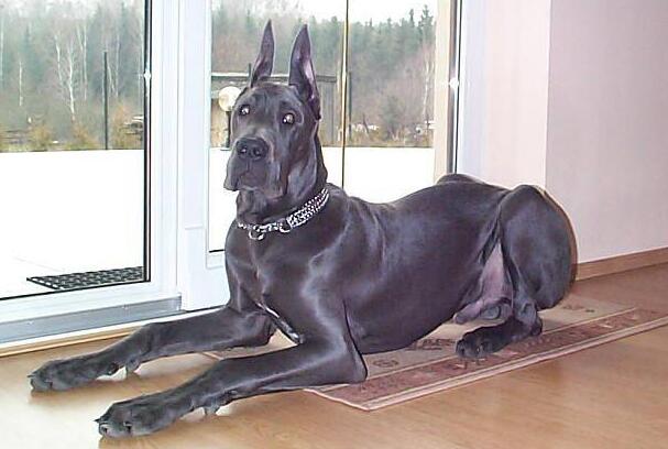 大丹犬又叫大丹狗、德国犬、德国獒犬等等,它的身高约为70-90公分,体重约为50-70公分。它的毛发短而厚,且富有光泽,头大且长,体型高大优雅,强壮有力。它有几种种群分类,比如虎斑大丹犬、黄褐色大丹犬、蓝大丹犬、黑大丹犬、丑角大丹犬、披风大丹犬等等。大丹犬的祖先曾经被欧洲贵族饲养,所以它是贵族身份的象征,由于它在工作中长途跋涉并且非常轻松,因此被人们称为太阳神的犬。