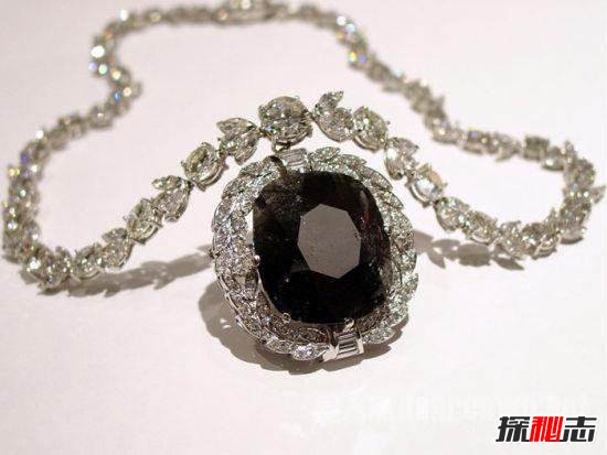 是一颗举世罕见的黑钻石,世界最稀有宝石之一,又称为黑色奥洛夫,充满了传奇色彩的一颗宝石,传说是带着死亡诅咒的石头,拥有者全部离奇自杀。最初重195克拉,为了破除诅咒被分割成三分,现在只有67.5克拉,在英国伦敦自然历史博物馆展出。