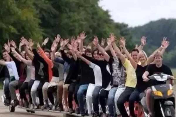 来自英国的一位男子Colin Furze曾经突发奇想改造出了一辆能够承载25人的摩托车,而这辆摩托车的长度高达22米,甚至和一节火车车厢一样长,因此也被吉尼斯认证为世界上最长的踏板摩托车,看起来就好像是数十辆普通摩托车连接在一起的样子。