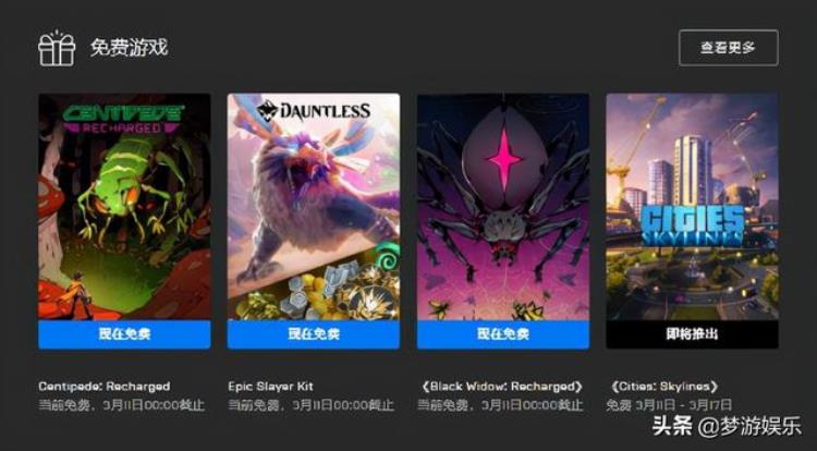 Epic商城的“喜加一”开启,本周送出《大蜈蚣》、《Epic Slayer Kit》、《黑寡妇:再充能》三款游戏,下周将送出《城市:天际线》。