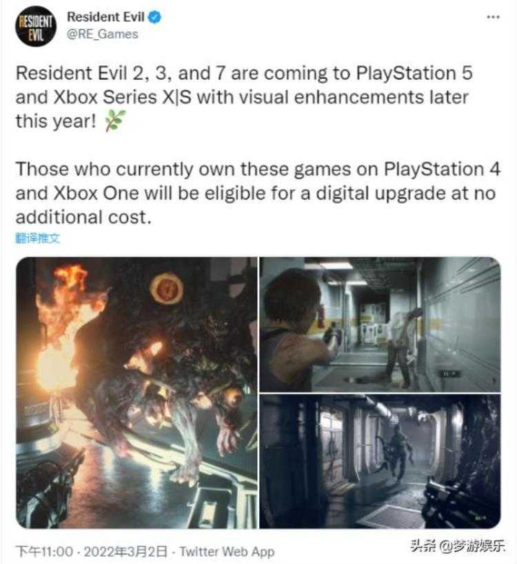 昨日,卡普空正式宣布,《生化危机2:重制版》《生化危机3:重制版》以及《生化危机7》将在今年晚些时候推出次世代升级版,登陆PS5和XSX|S平台,并提供视觉增强功能。