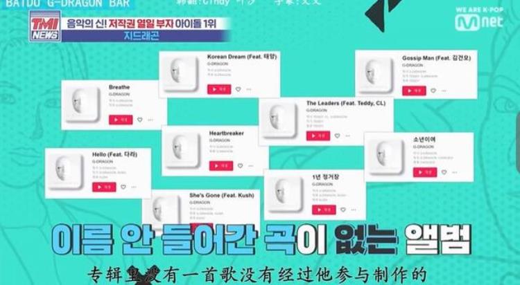 并且不止担任组合BIGBANG回归单曲制作,成员们的个人solo专辑,你也能在创作人列表中看到他的名字;为《无限挑战》节目组与IU、严正花等人制作的单曲,也分分钟就登顶榜单