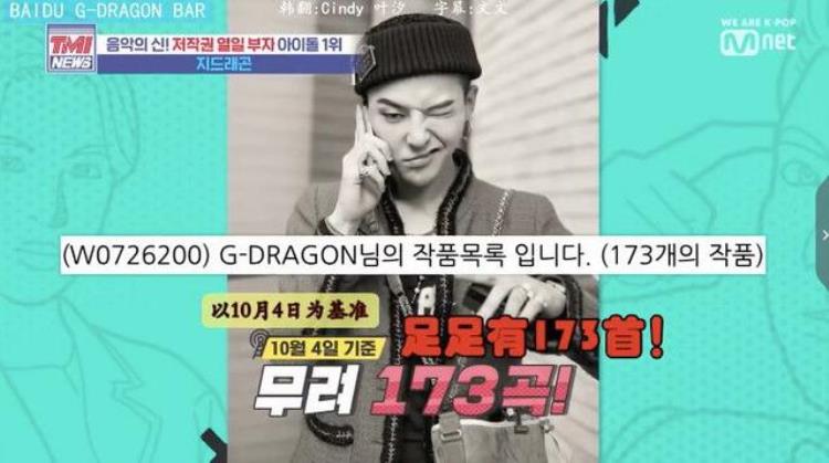 圈内,权志龙是出了名的“版权富翁”。据统计,截止到10月4日,整整173首歌曲版权归权志龙本人所有,2018年基准作词费第一名,单靠版权一年就能赚14亿韩元,妥妥“young and rich”