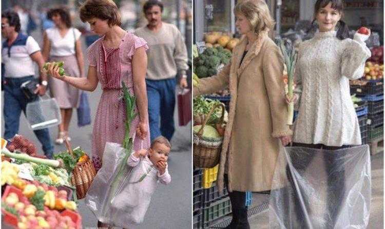 摄影师与这一对母女再度重返布达佩斯市场,用塑料袋再现了当年的场景,让人感慨万千。