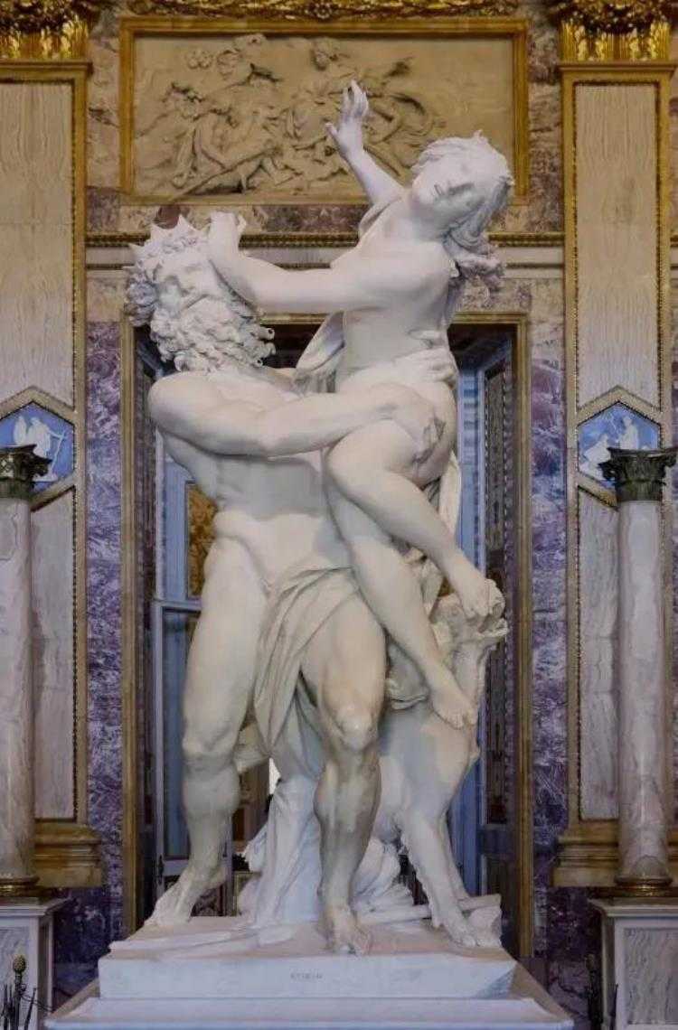 人们可以看到普洛塞耳皮娜坠落的泪珠、因惯性而飘起的乱发和微启的嘴唇。冥王的手深深陷入普洛塞耳皮娜丰满结实的肌肉中,强烈的性张力冲击着每一个观赏者。神女奋力推开冥王的头颅,身体倾倒,姿态被茧缚住的蝴蝶,带给观赏者一种动态的美感。