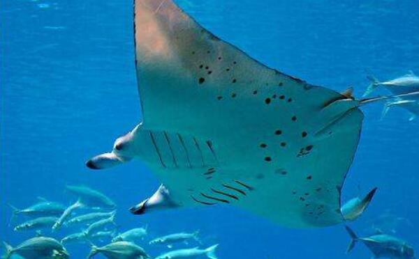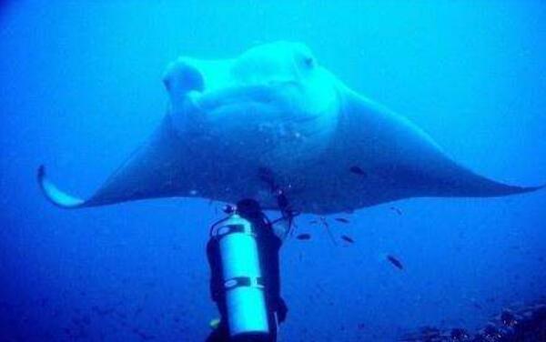 作为世界上最温柔的鱼类,蝙蝠鱼的体重不轻,基本能超过1.4吨,但它游动的时候线条非常的优美,在海洋中它就像一个庞大的精灵。蝙蝠鱼很活泼,它喜欢在波浪中嬉戏,很能和潜水者一起游泳,十分的亲人,超可爱的。