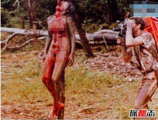 这是一个被俘的国民党军队抗战士兵,它的整条左腿肉被剔骨割光,让虾夷人吃掉了,他就在这种惨无人道折磨中活活疼死了。这人间惨象的凶手是日寇侵华期间来自日本北海道虾夷族的虾夷人官兵,那个族群很残暴,来到中国之后,竟然又大批吃人肉。在作战期间,它们常常割下刚刚阵亡或被俘中国士兵的大腿肉装进行军饭盒,抽空就拿出来用火烤着吃。