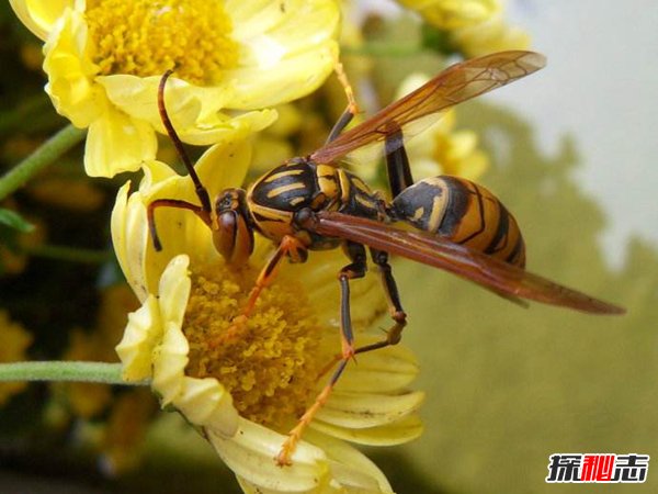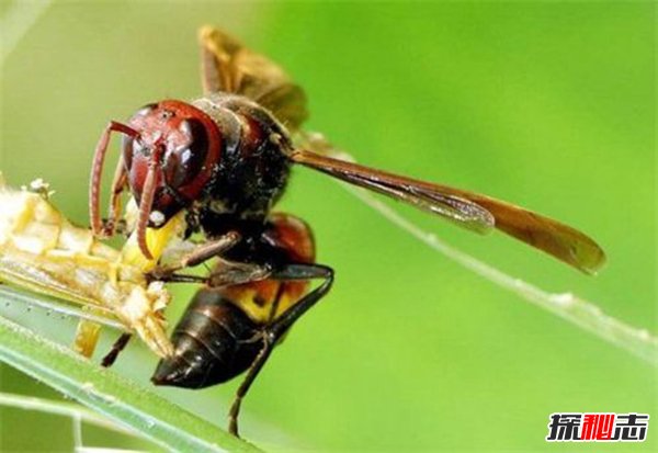 日本大黄蜂是世界上最大的黄蜂,不仅体型大相应的毒针也比较长比较大。它们的毒液是一种具有强烈腐蚀性的酶物质,可以分解人体组织细胞,所以它也被很多人称之为“来自地狱的大黄蜂”。