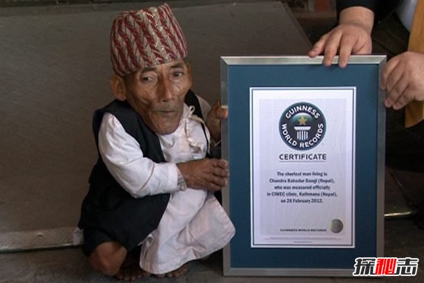 根据吉尼斯世界纪录,来自尼泊尔的钱德拉·巴哈杜尔·唐吉身高54.6cm,体重为12公斤,是世界上最小的活着的人。他于2015年9月3日去世,享年75岁,目前官方为公布其真实的死亡原因,不过猜测应该是肺炎。
