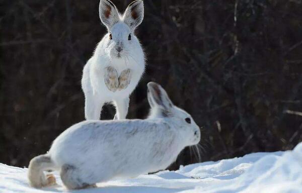 白靴兔长相跟一般兔子差不多,不同的是它会变色:体毛在夏天时是锈褐色的,冬天会转变为白色。听起来是很神奇,可原因很简单,白靴兔变色是为了生存,它生活周围常常是冰雪世界,为了能够隐蔽一些,躲避天敌,白靴兔在冬季全身会变成雪白色,这就是适者生存啊!